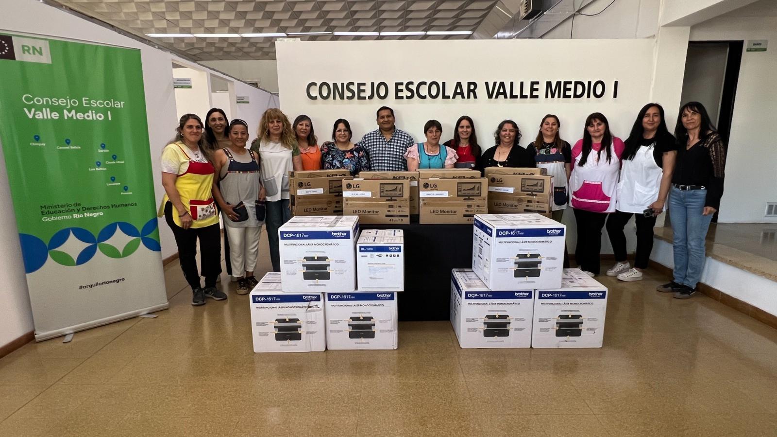 El Gobierno de Río Negro a través del Ministerio de Educación y Derechos Humanos, entregó equipos informáticos en once establecimientos educativos de Valle Medio en el marco del programa "Escuela Presente", para continuar fortaleciendo el trabajo pedagógico y administrativo de estas instituciones.