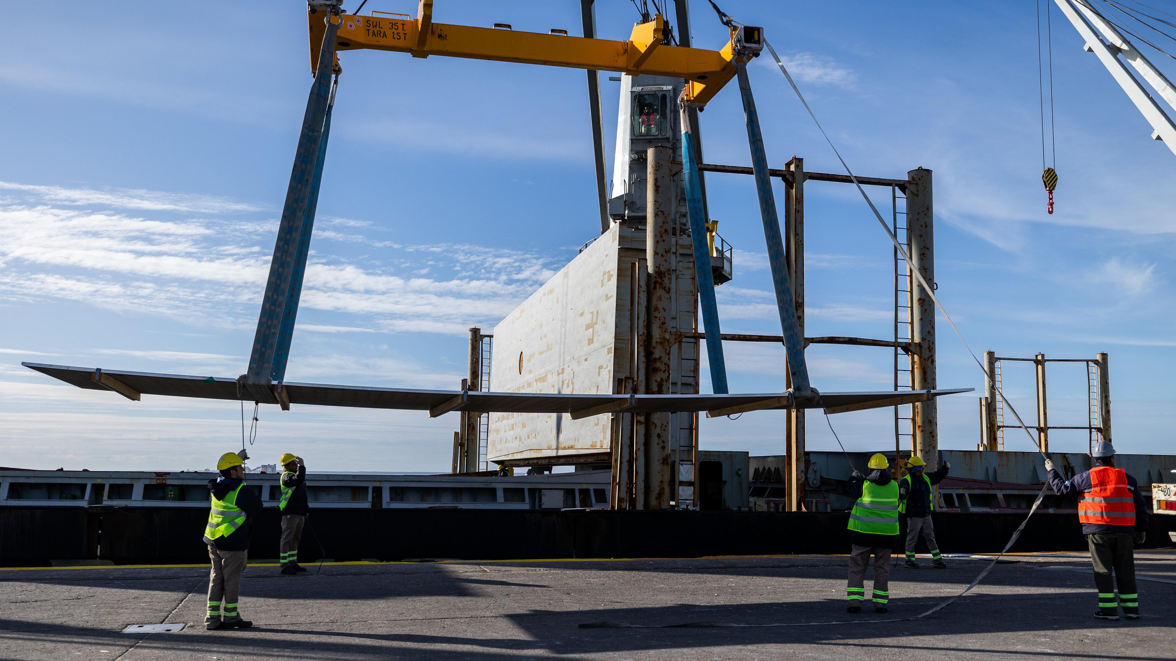 La Secretaria de Energía y Ambiente, Andrea Confini, destacó el impacto histórico de la llegada de 8.000 toneladas de chapas de acero al Puerto de San Antonio Este para la construcción de los tanques del oleoducto Vaca Muerta Oil Sur.